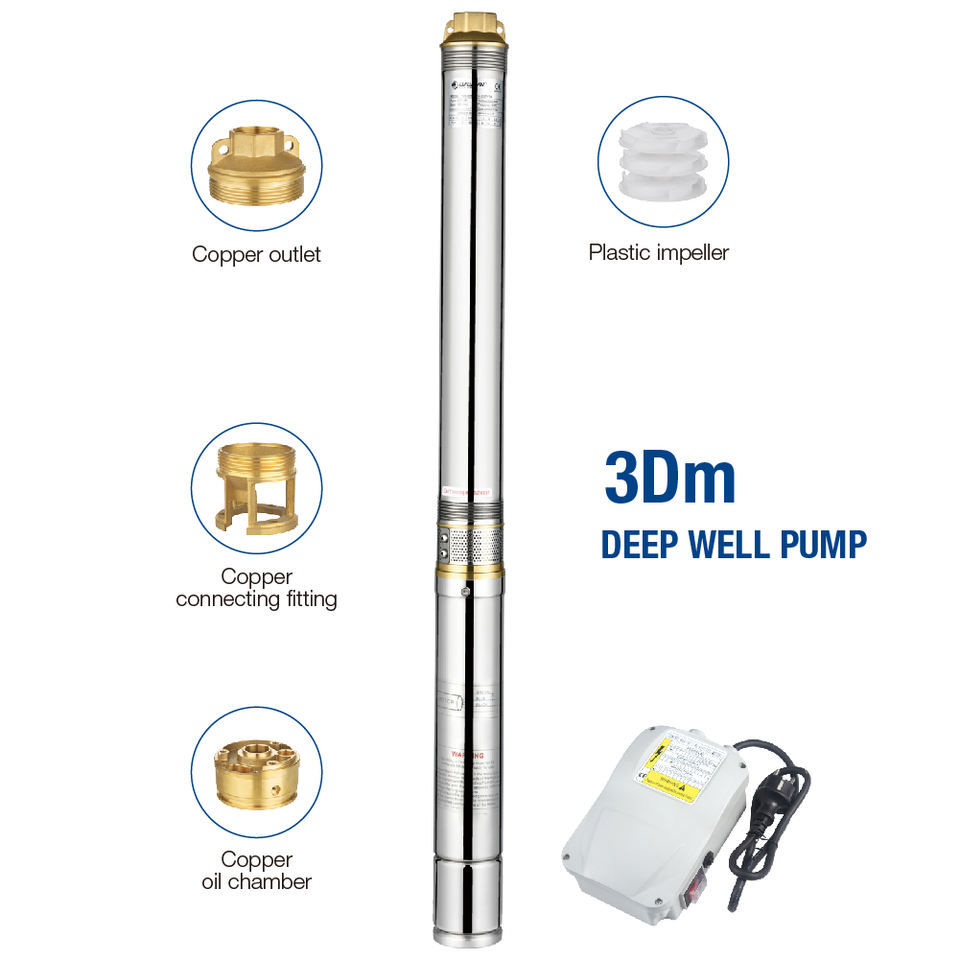 DAYUAN 3 pouces DM pompe de puits profond submersible en acier inoxydable 2 mètres cubes pompes à eau submergées avec boîtier de commande