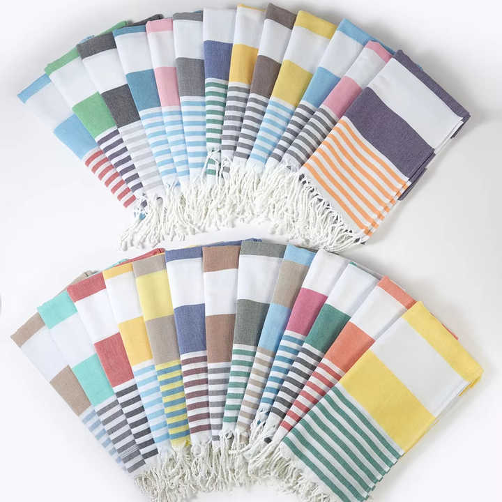 DAZHOU OEM Serviette de plage carrée à rayures en polyester/coton à séchage rapide, châle de plage, couverture à franges tissée jacquard