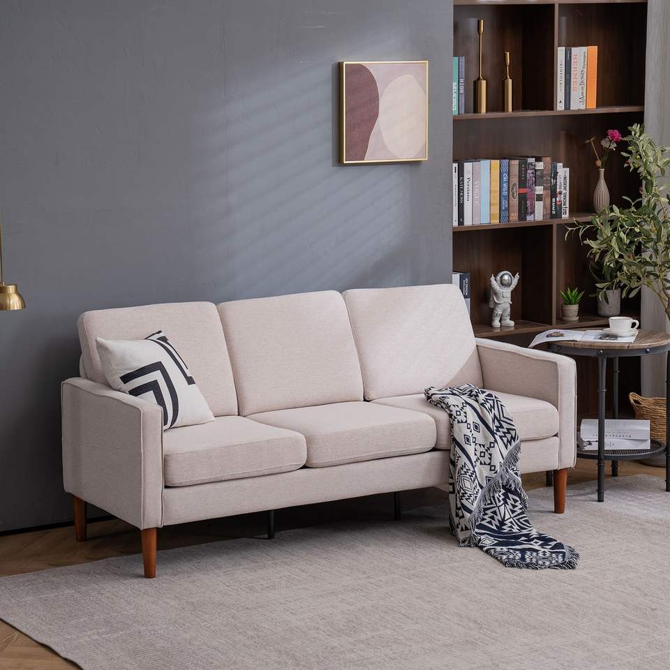 DB 180*76*85cm lin pieds en bois massif deuxième génération trois sièges Chaise Concubine cadre en bois massif Durable canapés de salon