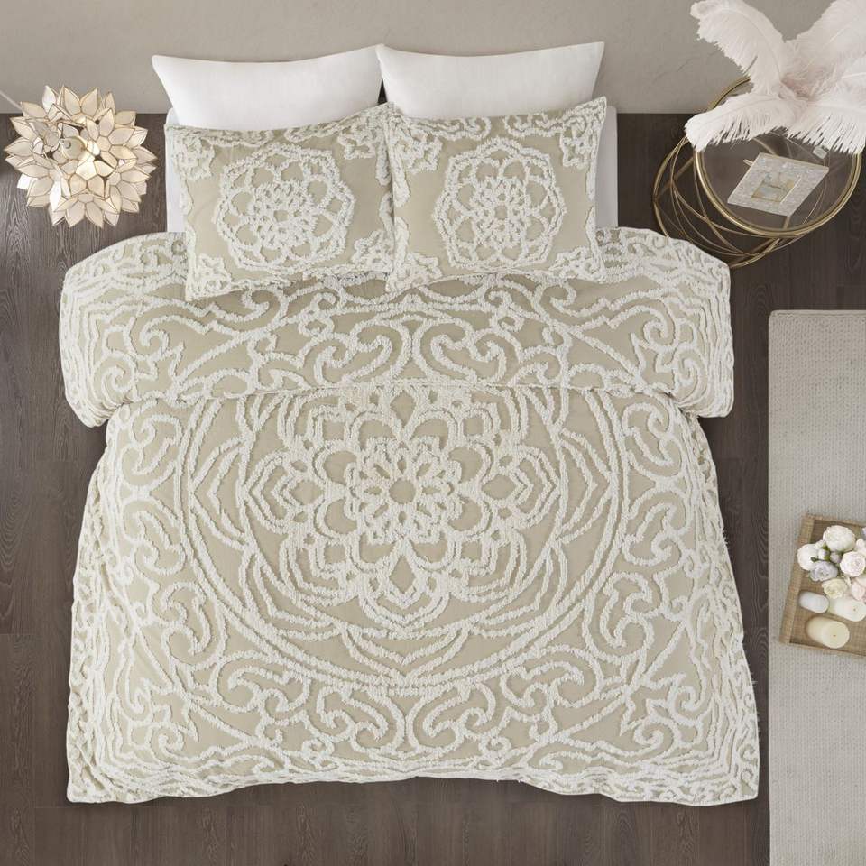 Parure de lit florale en coton tufté 3 pièces pour lit simple et double, avec couette, pour la décoration intérieure, nombre de fils