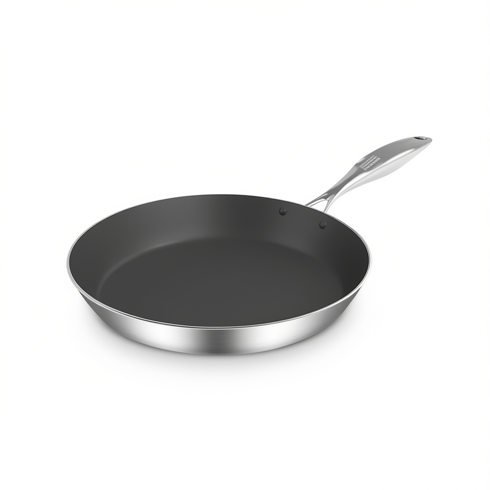 Poêle à frire DB en acier inoxydable 34 cm, intérieur antiadhésif, compatible induction, design moderne, fond plat