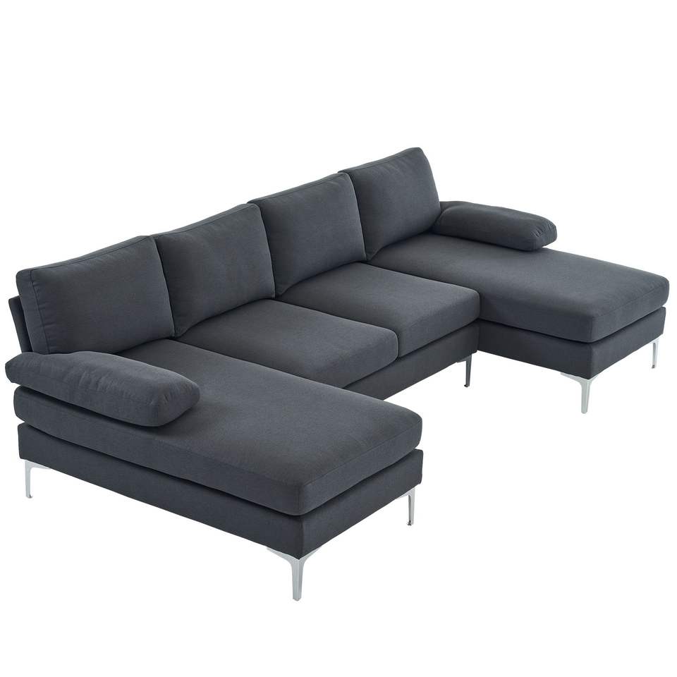 Canapé modulaire d'intérieur DB 4 places 280*130*85 cadre de siège en lin en forme de U cadre de fer arrière en bois extensible ensemble de meubles de pieds argentés
