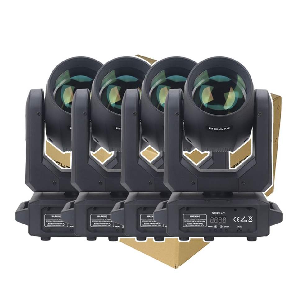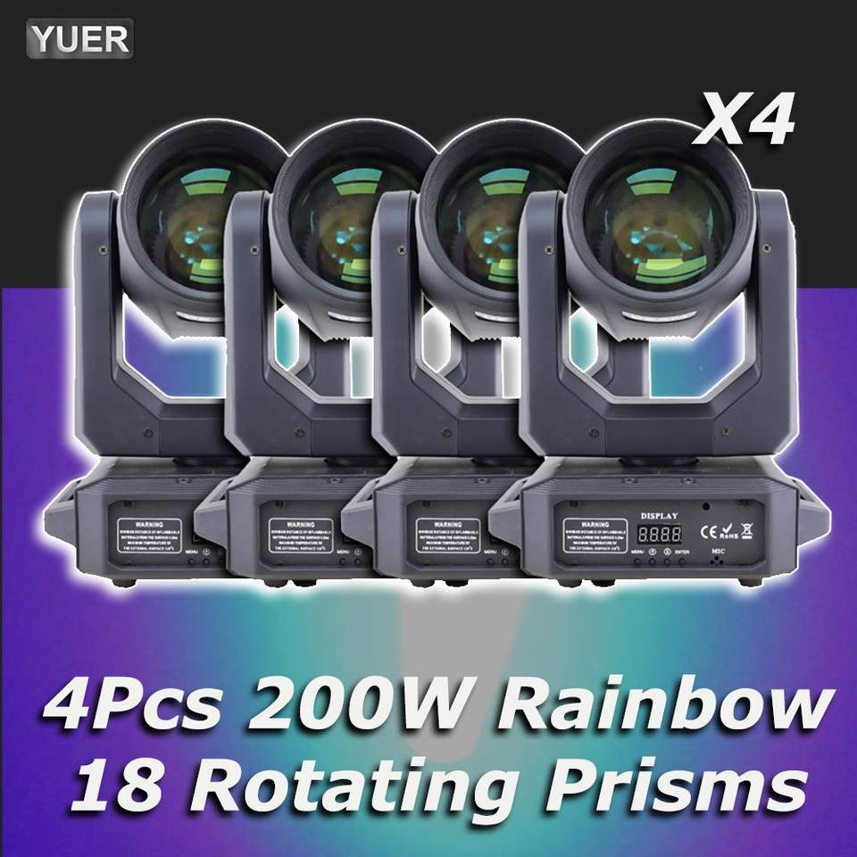 4 pièces 200W Projecteur de scène LED blanc, Lyre asservie DMX512 pour DJ, Effet faisceau spot 18 prismes arc-en-ciel