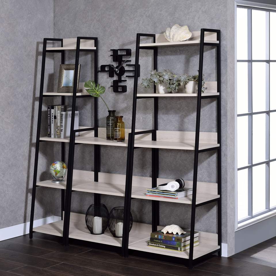 Bibliothèque à échelle DB à 5 niveaux en bibliothèques et étagères durables naturelles et noires