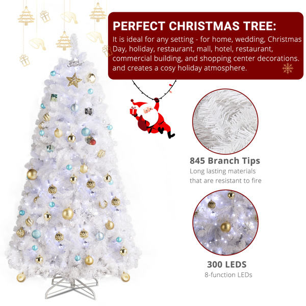 Sapin de Noël artificiel DB de 1,80 m, blanc froid, en PVC, avec 300 lumières LED, télécommande, pour usage intérieur décoratif
