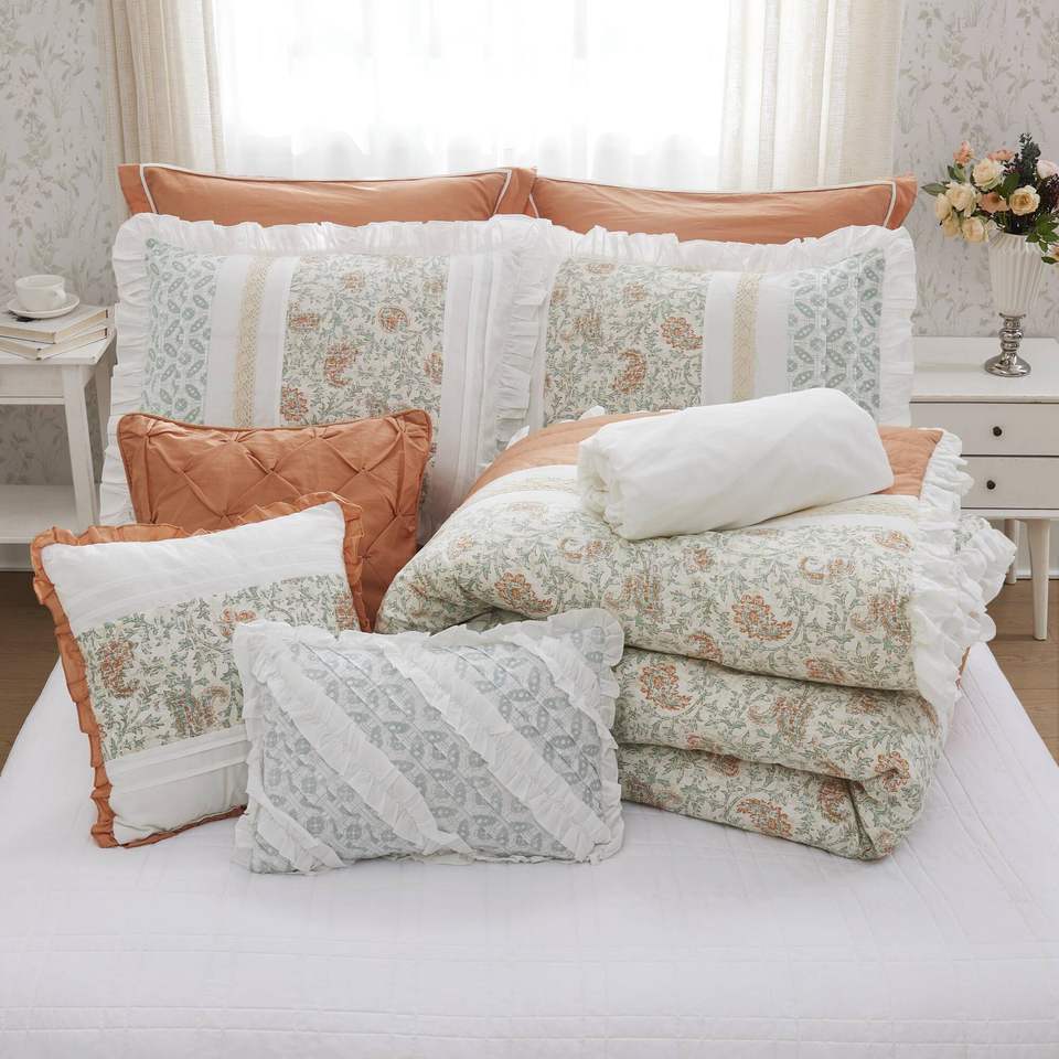 Ensemble de couettes à imprimé floral DB 9 pièces 100% percale de coton Style simple pour mariage à la maison-Disponible en tailles King Super King