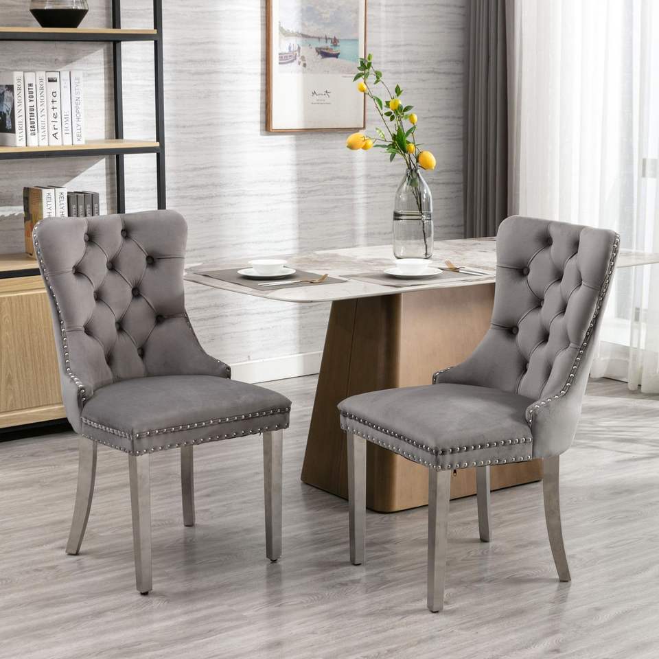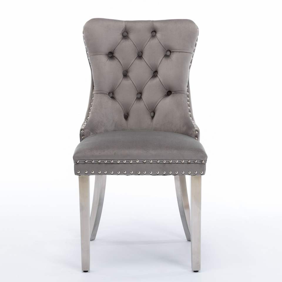 Chaise de salle à manger capitonnée en velours de la collection Nikki de DB A&A Furniture, pieds chromés, mobilier contemporain moderne pour la maison