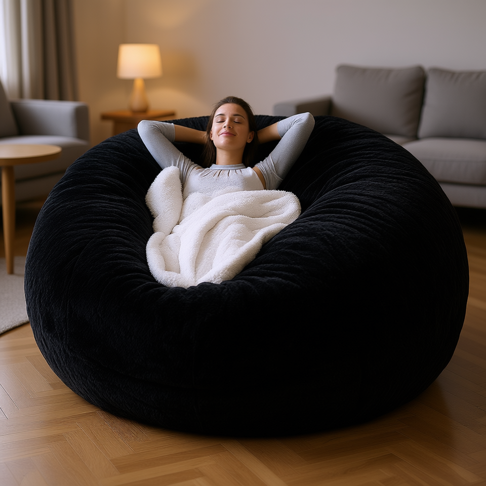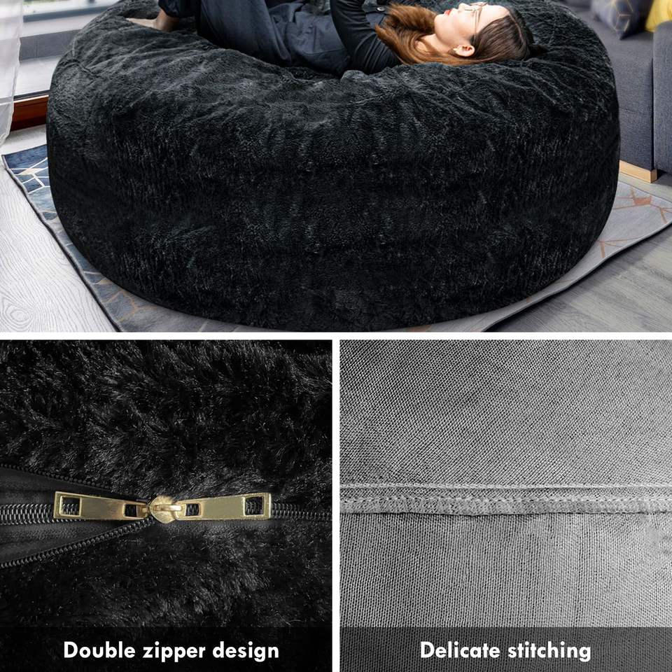 Housse de pouf géante en velours PV ultra doux et moelleux, ronde, amovible, extra douce, moderne, pour la maison et le bureau, pour une place, noire