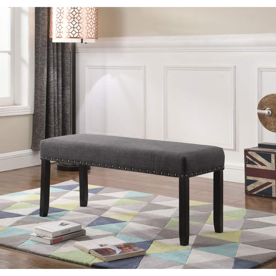 Banc de salle à manger gris avec garniture à tête de clou DB Biony Banc en tissu confortable pour votre mobilier de salle à manger