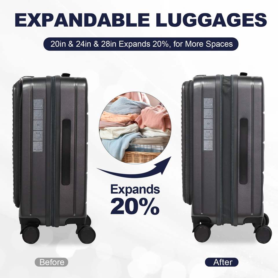 Valise rigide à bagages approuvée par la TSA noire avec ouverture à l'avant Doublure légère en aluminium et polyester Noir DB