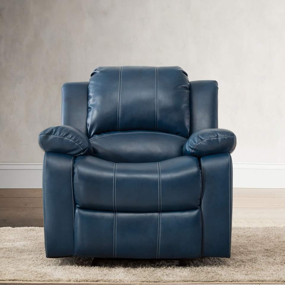 DB Charlotte Navy Blue Leather Gel Recliner Modern Extendable Sectional Sofa Set Synthetic Genuine Leather Wood Plastic