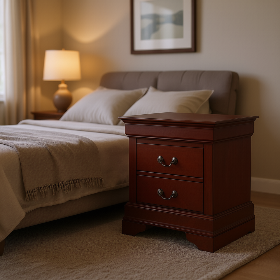 Table de chevet en bois massif Db Charming Cherry Finish, 2 tiroirs, meubles de chambre à coucher de luxe antiques pour usage domestique