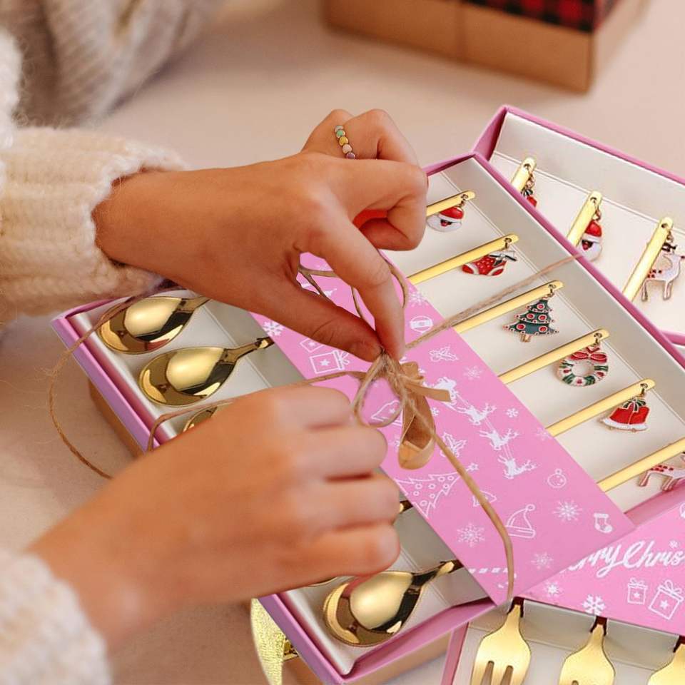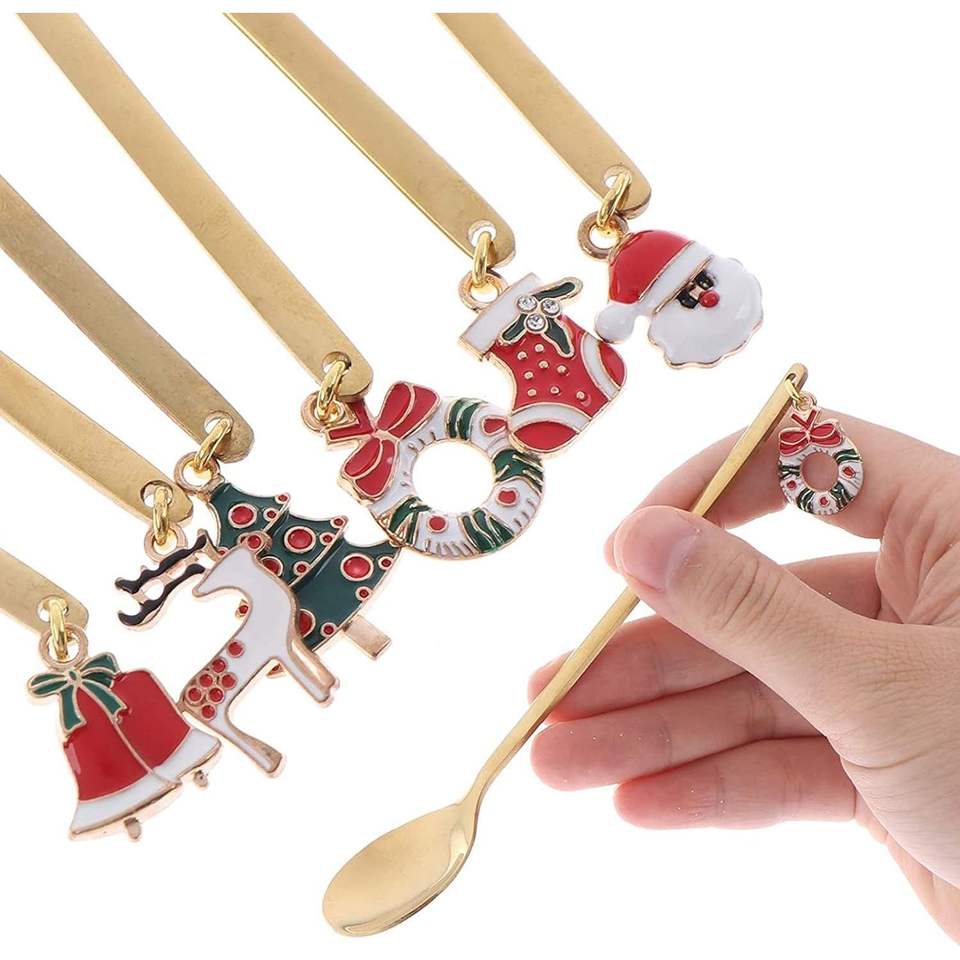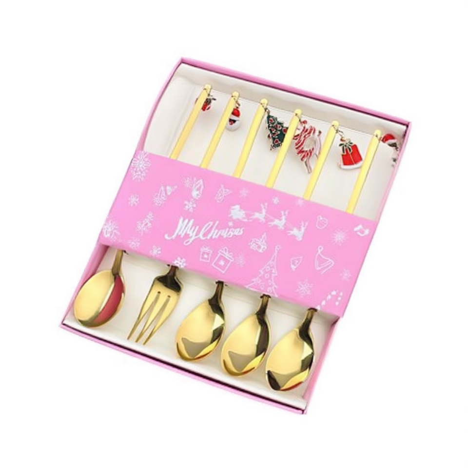 Ensemble de cuillères et fourchettes à thème de Noël, 6 pièces, en métal doré, pour décorations de fêtes de fin d'année