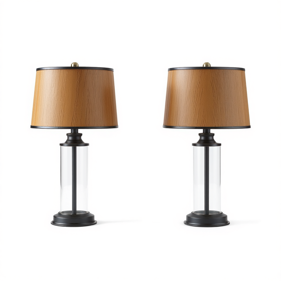 Lampe de table cylindrique en verre moderne DB Clarity, corps en fer, abat-jour en bois, LED, décoration intérieure, utilisation pour le bureau
