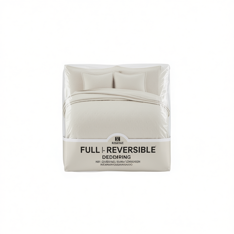 Parure de lit réversible RW Crème 1,5 m, 4 pièces, unie, tissée, toutes saisons