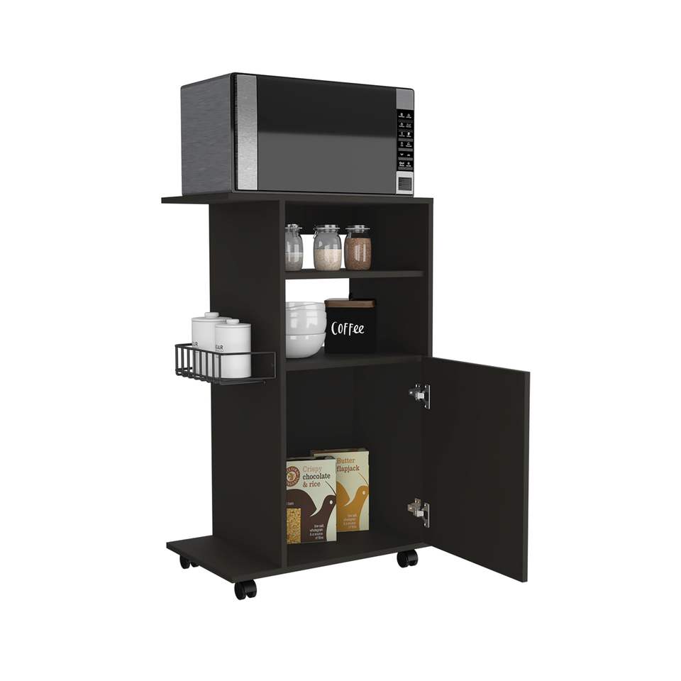 DB DEPOT E-SHOP chariot de cuisine moderne en bois à porte unique avec quatre roulettes armoire à porte simple noir opale