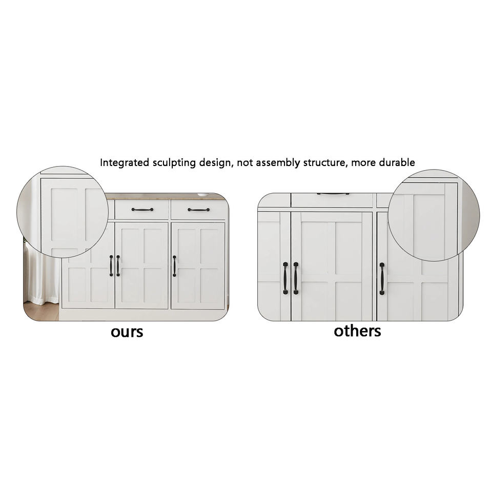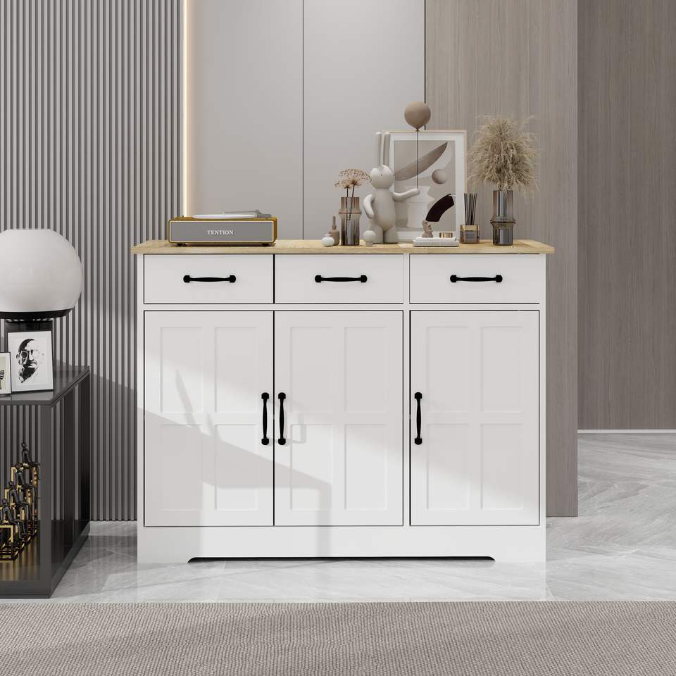 DB Farmhouse White Sideboard Buffet Cabinet with 3 Drawers and 3 Doors for Dining Living Room Kitchen or Home Bar Cupboard