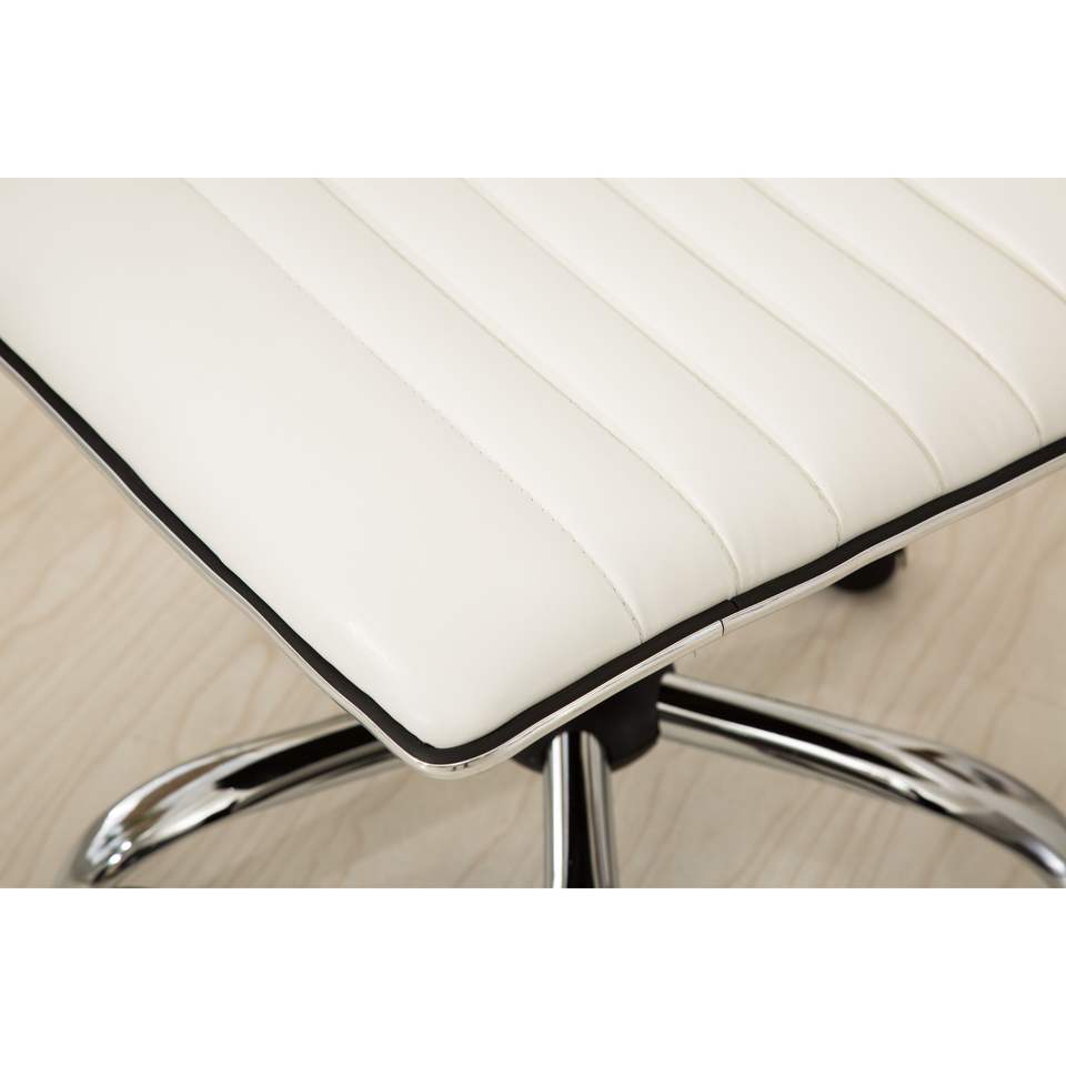 Chaise de bureau en cuir PU blanc DB Fremo, hauteur réglable, base pivotante, métal chromé, chaise de direction, utilisation à domicile ou au bureau