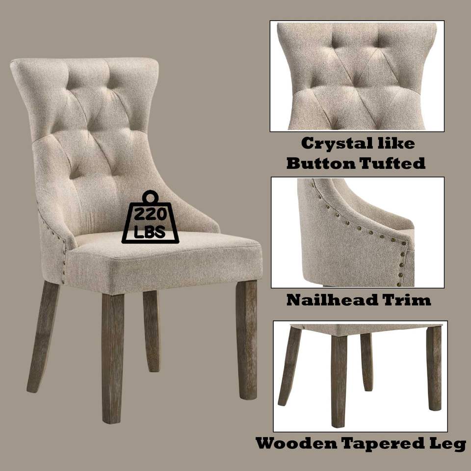 DB Gabrian, lot de 2 chaises de salle à manger, chaises d'appoint bicolores en tissu beige et finition gris récupéré
