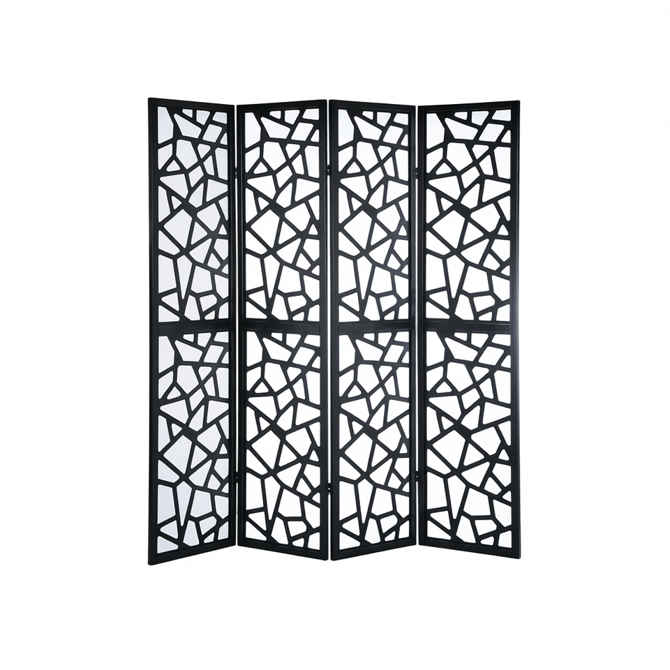 Paravent pliable en bambou DB Giyano à 4 panneaux, noir, moderne, découpé au laser, pour usage intérieur