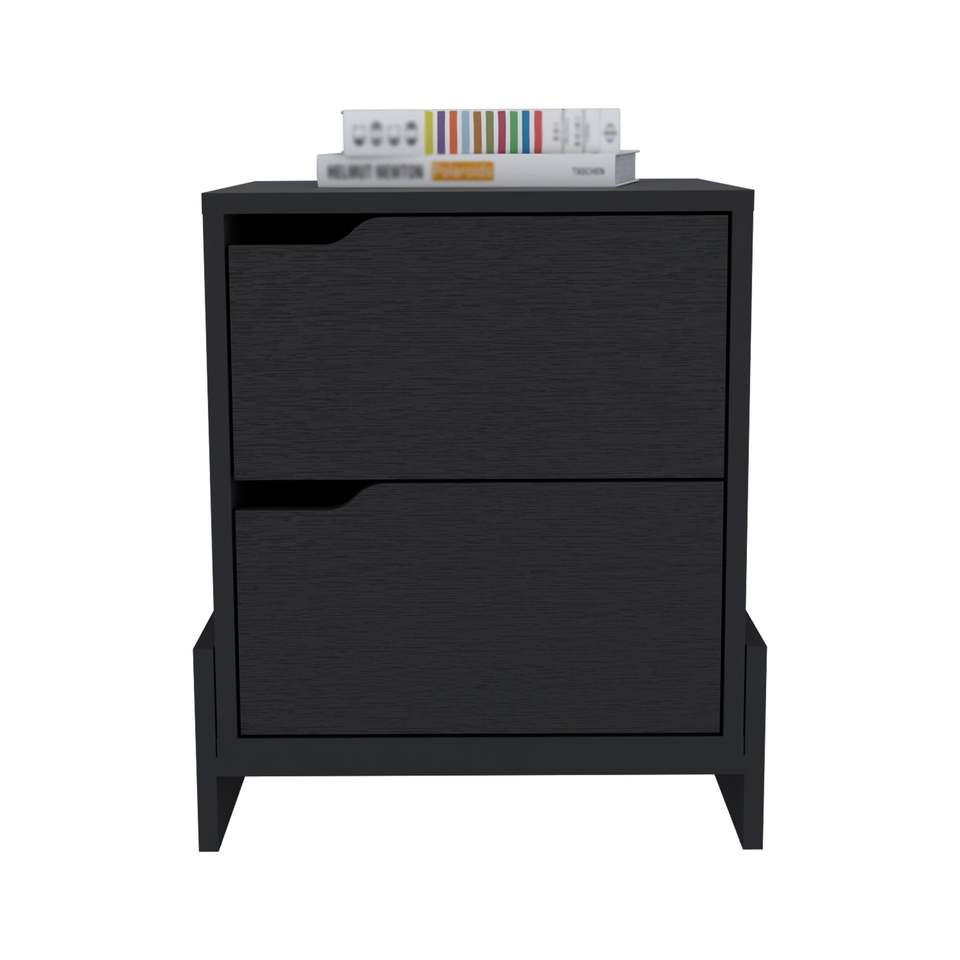 DB Haines Table de chevet 2 tiroirs DEPOT E-SHOP Table d'appoint en bois massif MDF Base robuste Noir Design antique européen moderne pour appartement