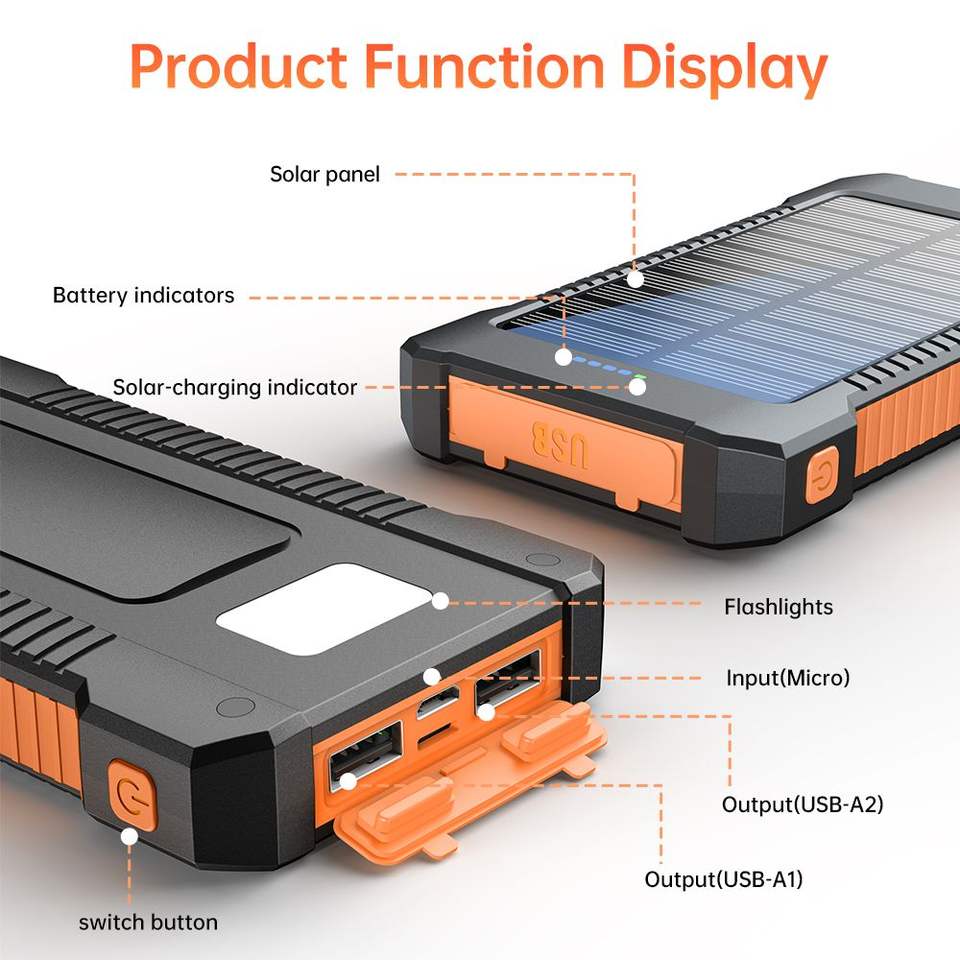Chargeur solaire portable DB haute capacité 8000mAh lumière intégrée à énergie solaire avec des capacités améliorées