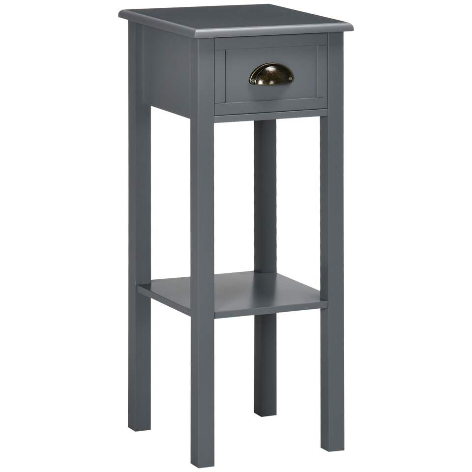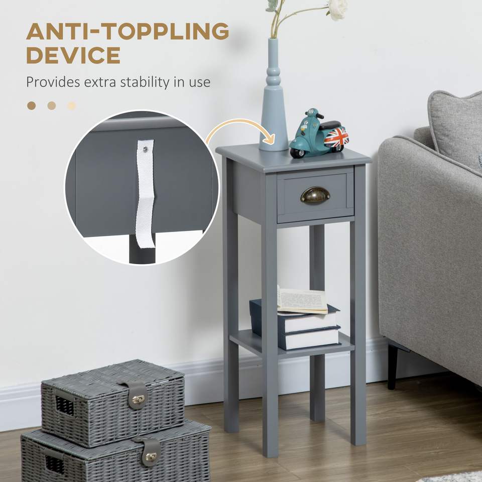 Table d'appoint à 2 niveaux avec tiroir, table d'appoint grise pour salon ou chambre à coucher