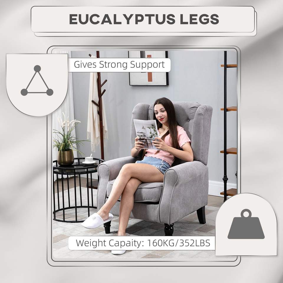 DB Offre Spéciale Chêne Button- Tufted Accent Chair pour Home Office High Wingback avec accoudoirs rembourrés arrondis Assise rembourrée épaisse Gris