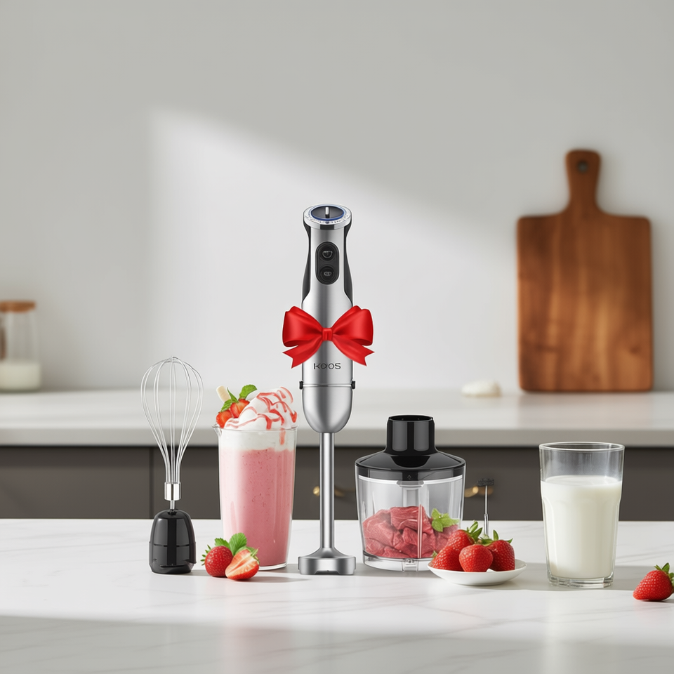 Mixeur plongeant Koios 12 vitesses avec tige en acier inoxydable, récipient en plastique, commande par bouton-poussoir, prise UK, pour usage domestique