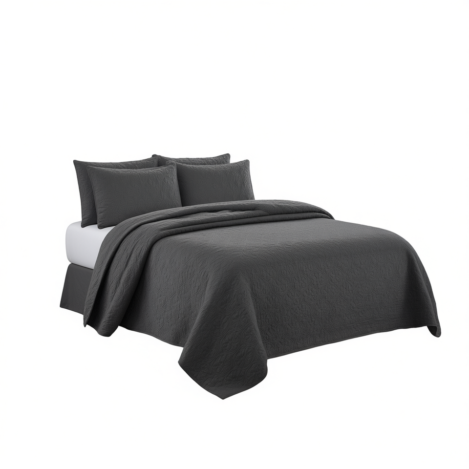 Ensemble de couvre-lit réversible gris foncé DB King Size 3 pièces Collection de literie pour la maison toute saison