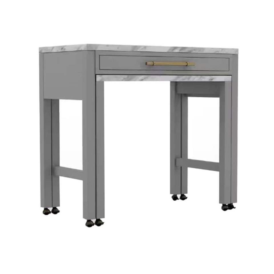 Table à manger à hauteur de comptoir gris clair DB avec table gigogne dessus en faux marbre meubles de salle à manger élégants