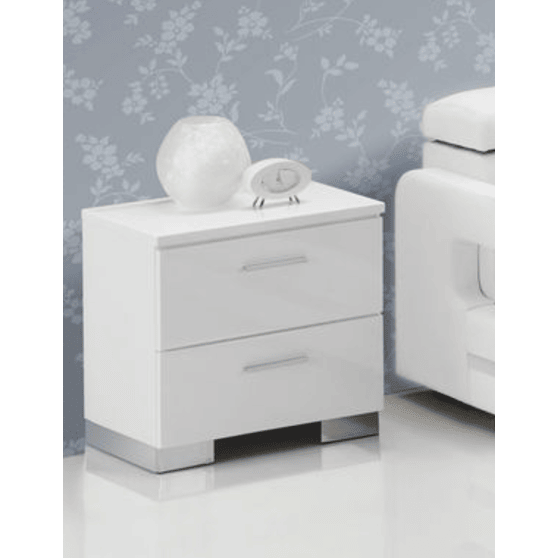 Table de chevet moderne DB Lorimar avec panneau en bois finition pieds blancs et chromés Table d'appoint de chambre à coucher pour meubles de maison