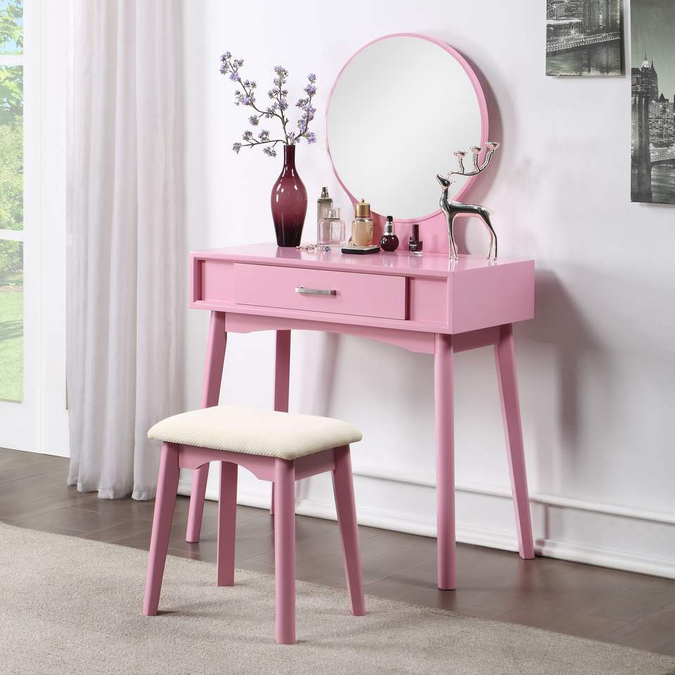 DB Maly Ensemble vanité et tabouret en bois MDF contemporain en rose Coiffeuse moderne pour le maquillage avec siège confortable
