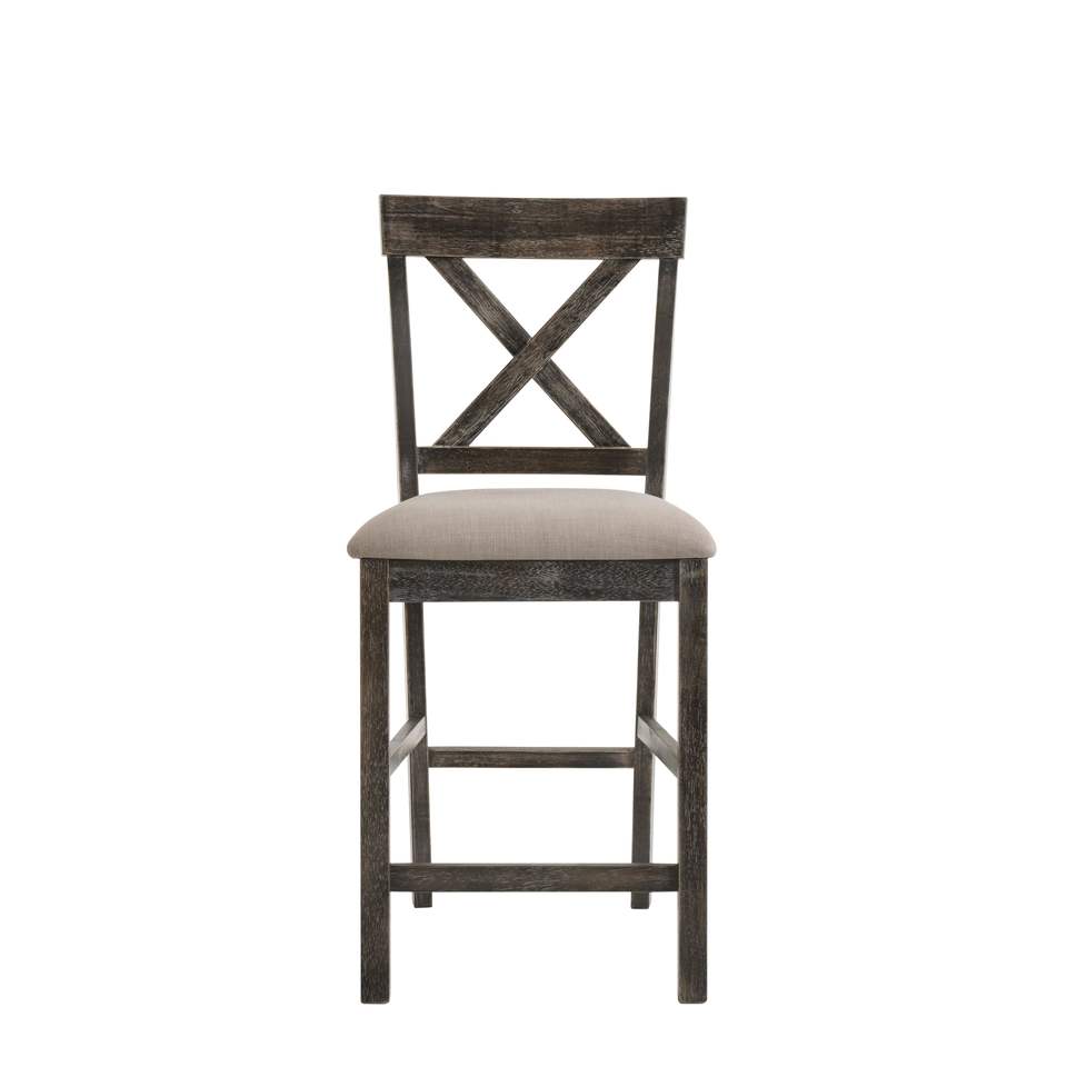 Chaise de bar DB Martha II en lin beige, hauteur comptoir, structure en bois rustique, mobilier de bar pour la maison