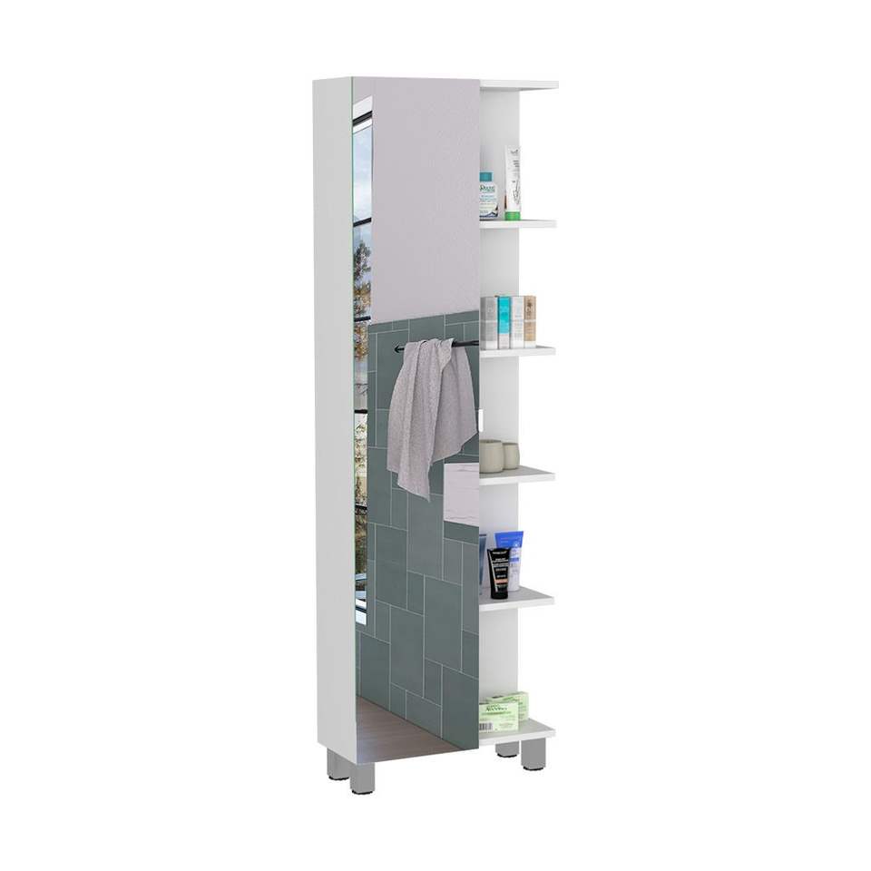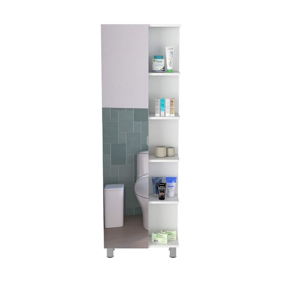 DB Mirror Linen Cabinet Reno Étagères de salle de bain avec quatre étagères intérieures Finition blanche