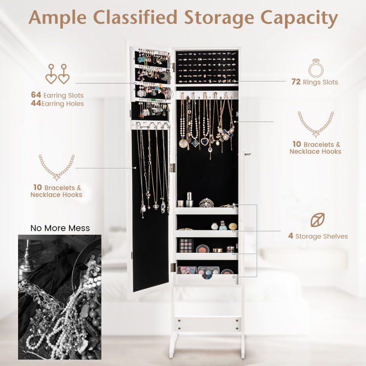 DB Mirrored Standing Jewelry Cabinet Elegant Storage Box Organizer