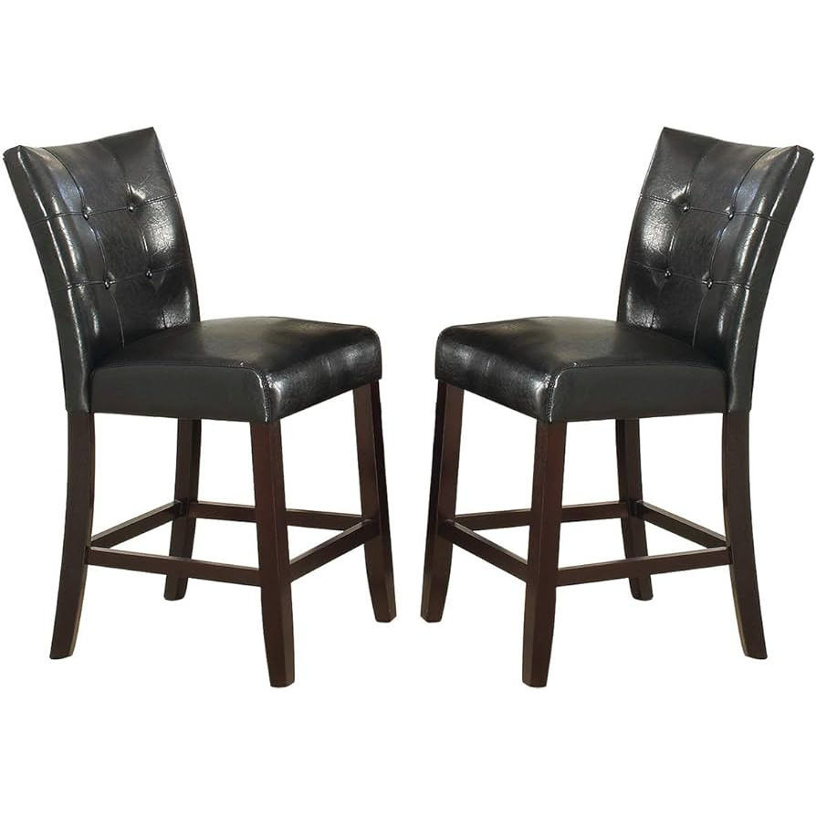 DB Modern Black Faux Leather Tufted Counter Height Dining Chairs Set of 2 High Seating Furniture
