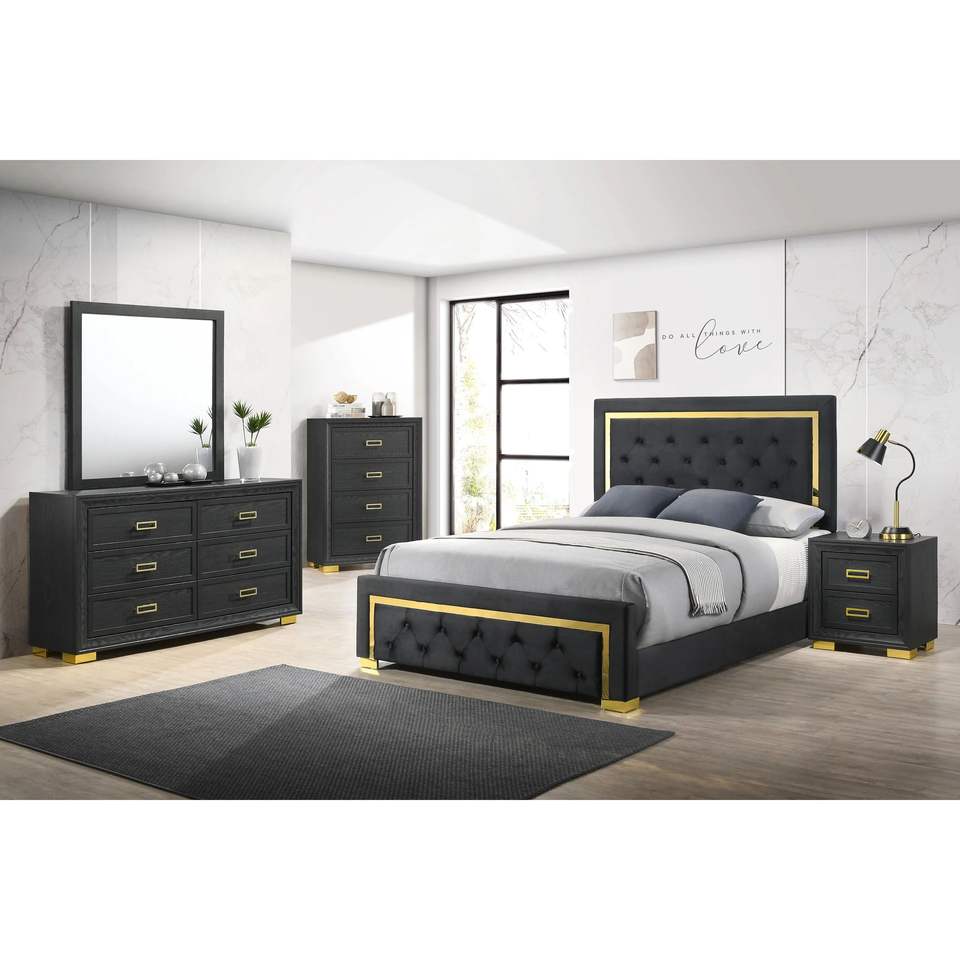 DB Modern Glam Style Table de chevet à 2 tiroirs 1pc Noir Or Finition Meubles de chambre Quincaillerie de couleur or pour Style Antique Apartme