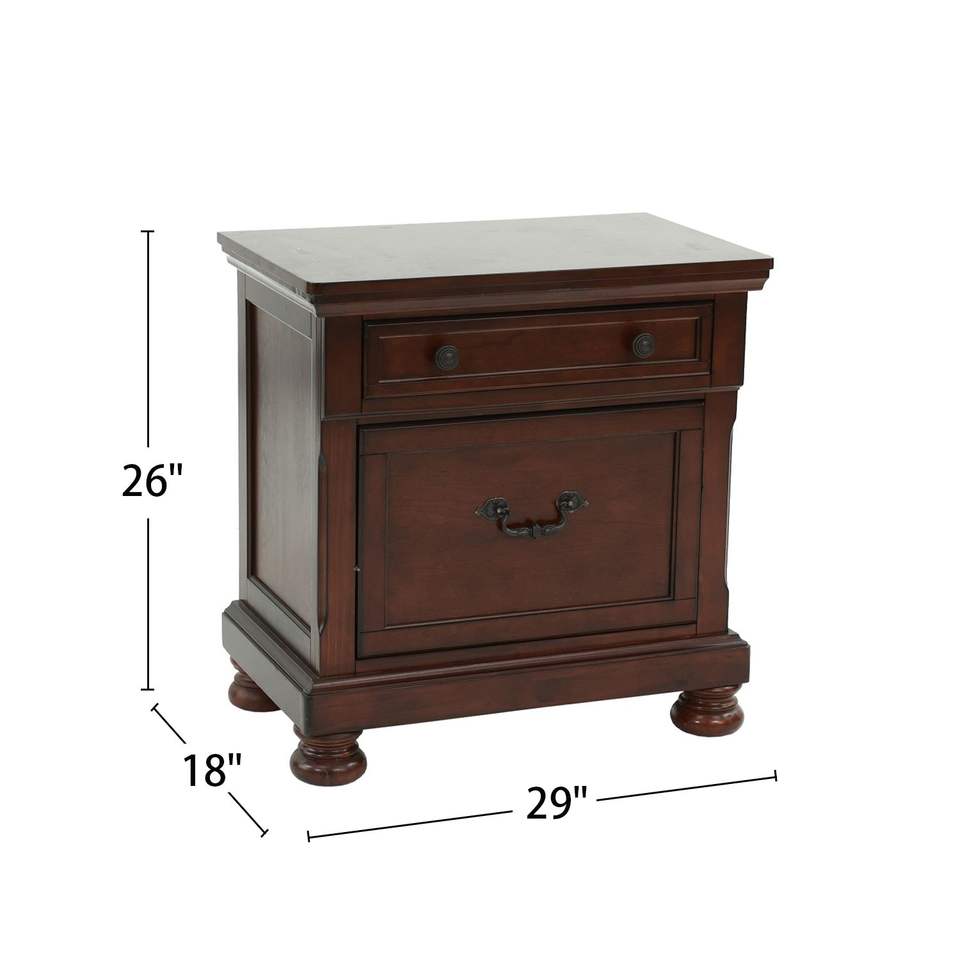 Table de chevet moderne de luxe DB avec 2 tiroirs Meubles de chambre à coucher en caoutchouc et bois finition cerisier antique pour appartement ou salon