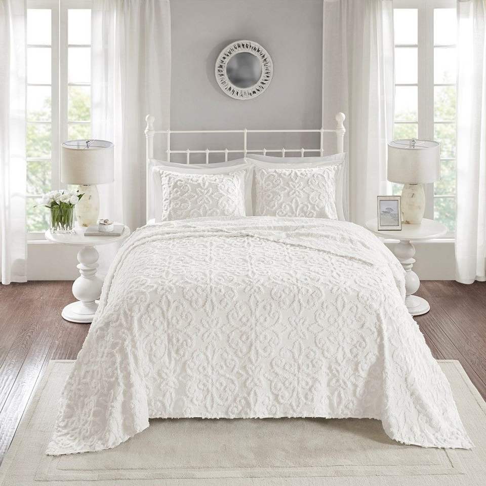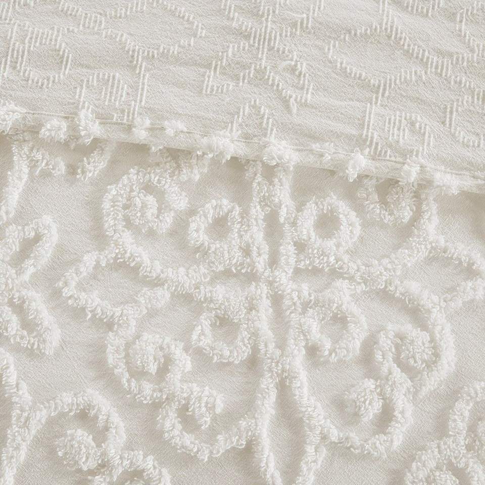 Ensemble de couvre-lit DB Modern Off White Full Queen 3 pièces en coton chenille capitonné avec design patchwork 3D pour hôtels