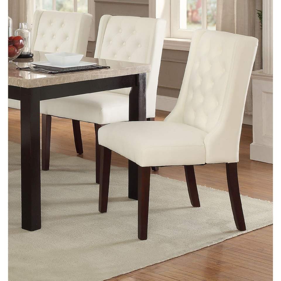 DB Modern Set of 2 White Tufted Faux Leather Dining Chairs Comfortable Seat Design