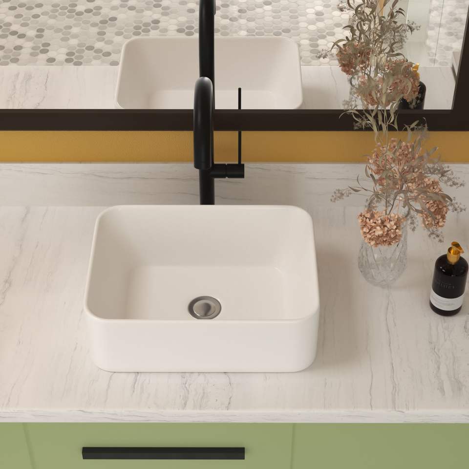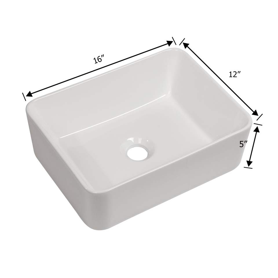 Lavabo rectangulaire en céramique blanche moderne DB, 16x12 pouces, à poser sur le comptoir, pour usage hôtelier