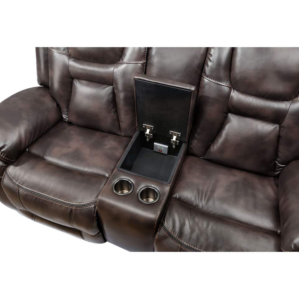 DB Oportuna Dual Power Console Loveseat Fauteuil inclinable marron foncé avec fonctions de positionnement confortables