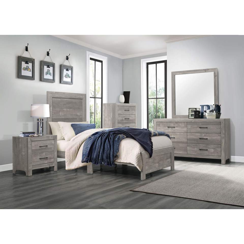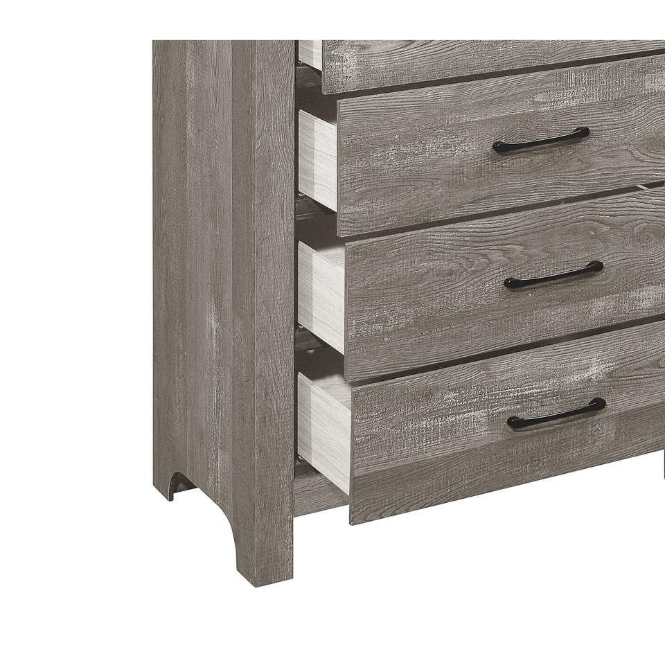 DB Design rustique 1pc coffre gris avec tiroirs de rangement quincaillerie en métal noir meubles de chambre à coucher