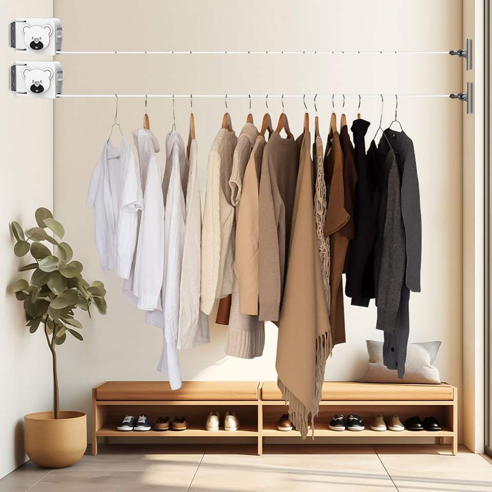 DB 2X 160mm White Wall-Mounted Metal Clothes Line Dry Rack Hanger Foldable Standing Type for Outdoor Home Use Travel
