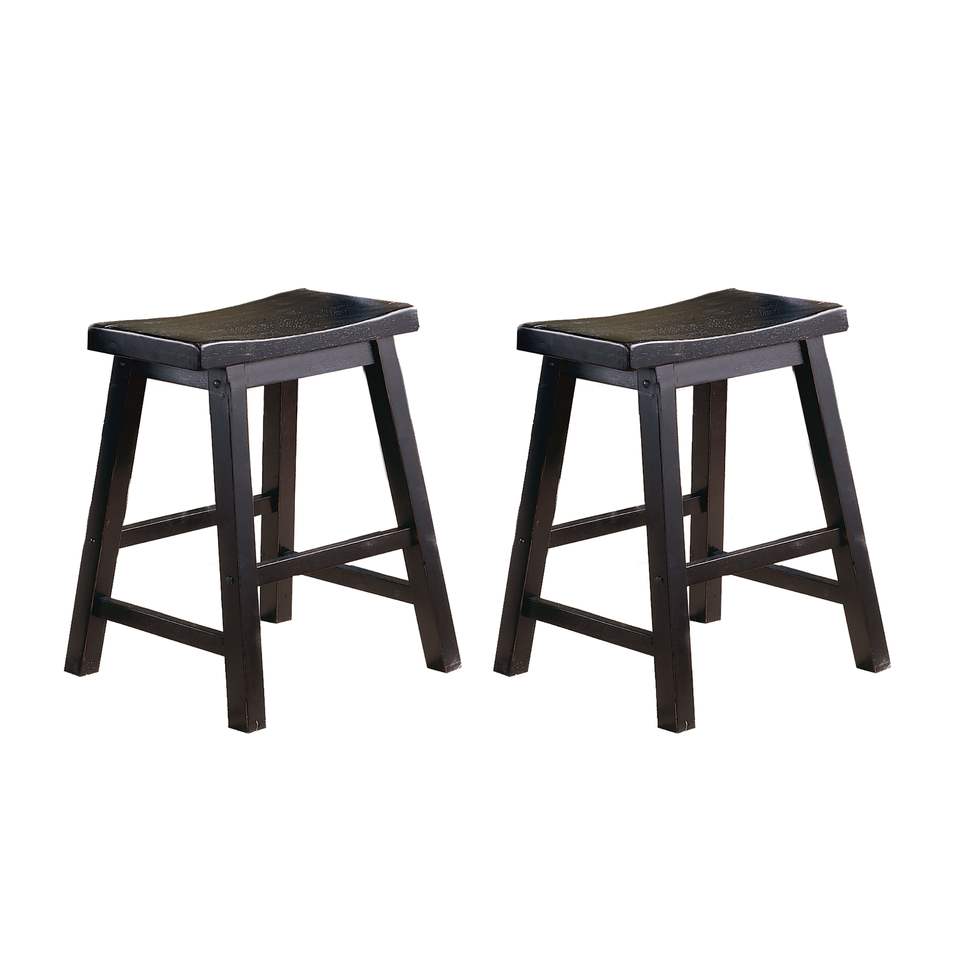 DB Lot de 2 tabourets de siège de selle de 18 pouces de hauteur finition noire meubles de salle à manger décontractés en bois massif pour la maison