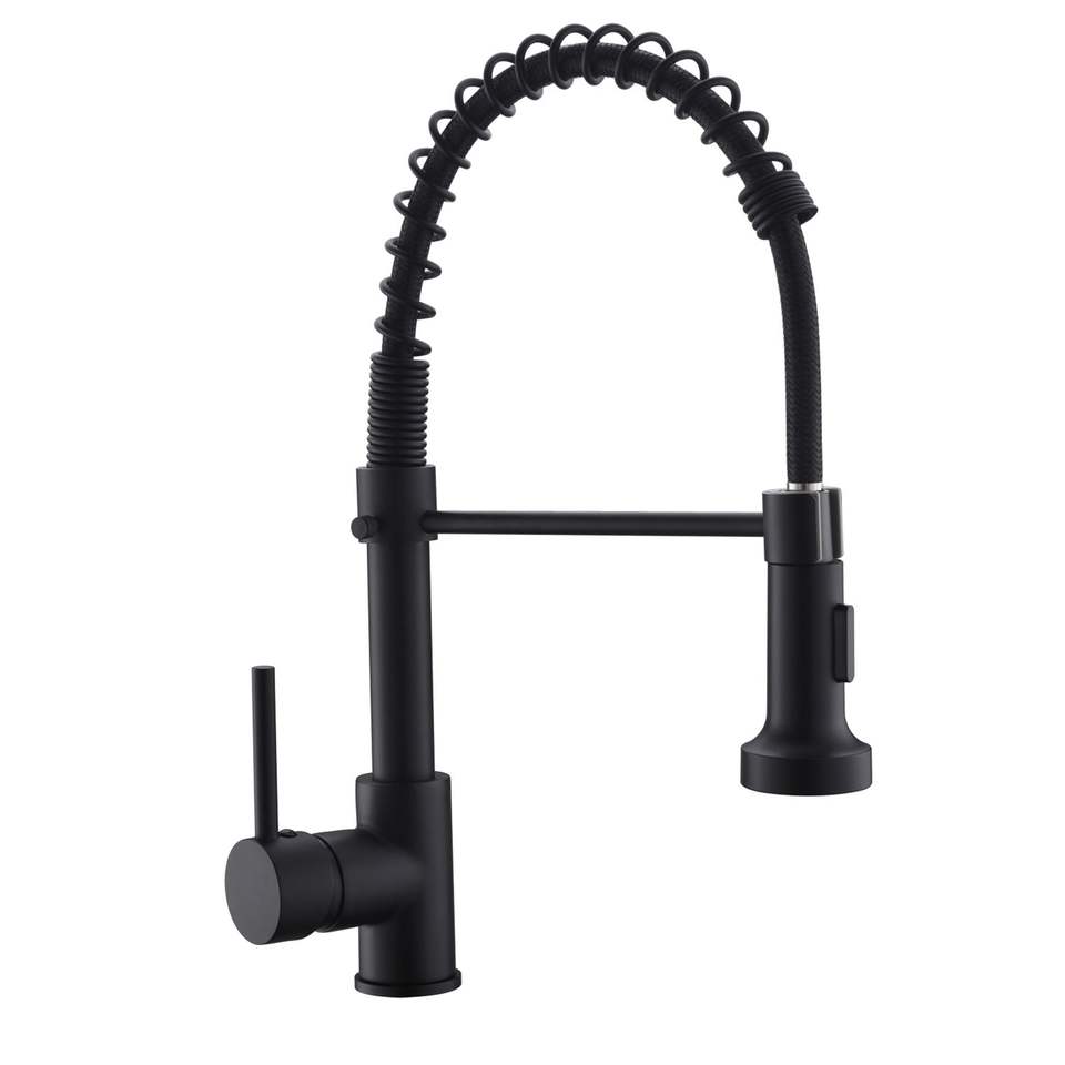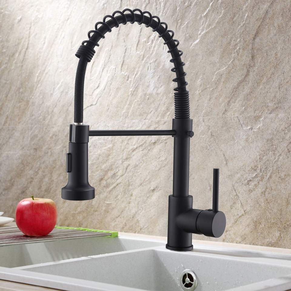 Robinet de cuisine monocommande extractible DB, noir mat, design contemporain, valve en céramique, 1 trou, montage sur plan.