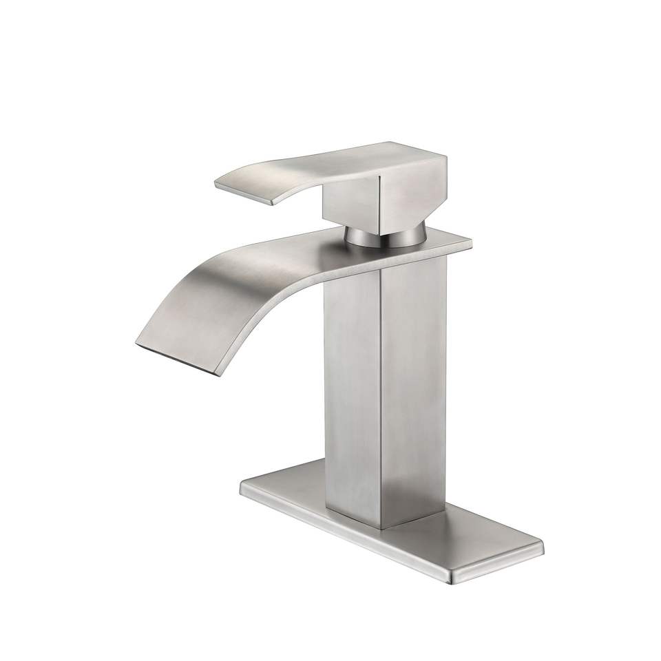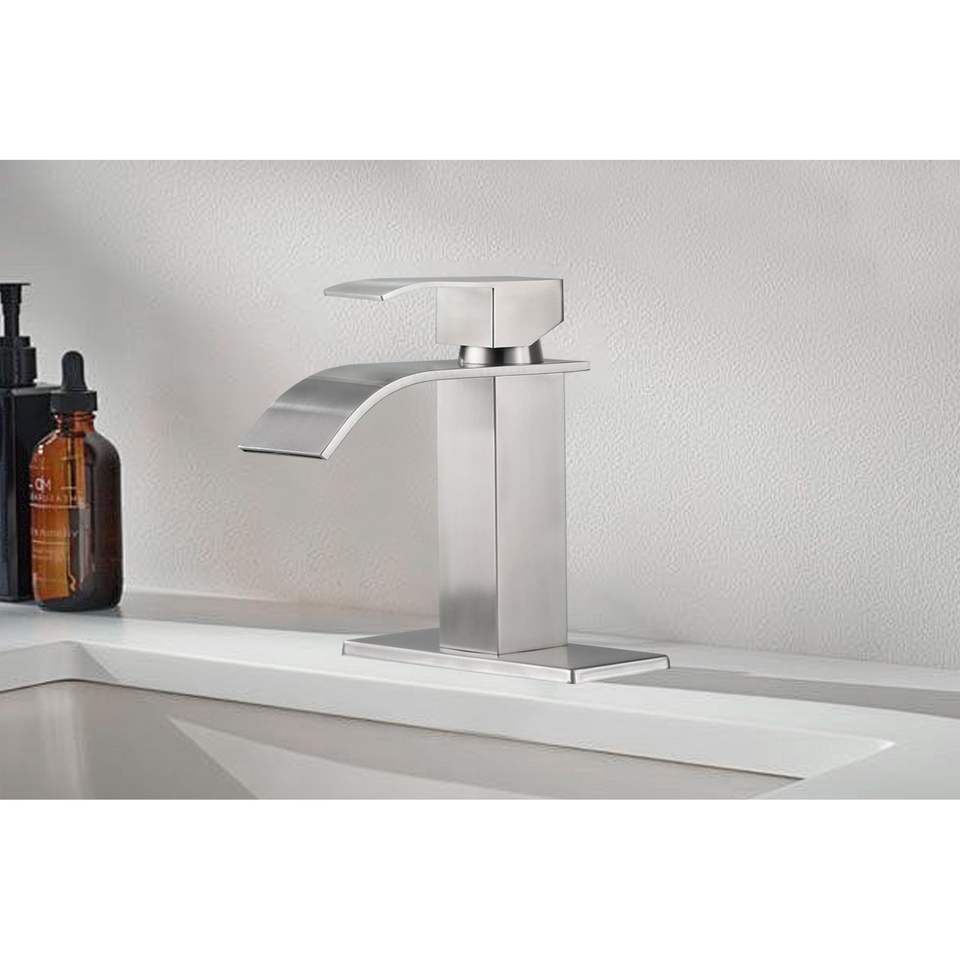 Db Single Handle Waterfall Spout Bathroom Sink Faucet Modern Design Brushed Stainless Steel Single Hole Installation