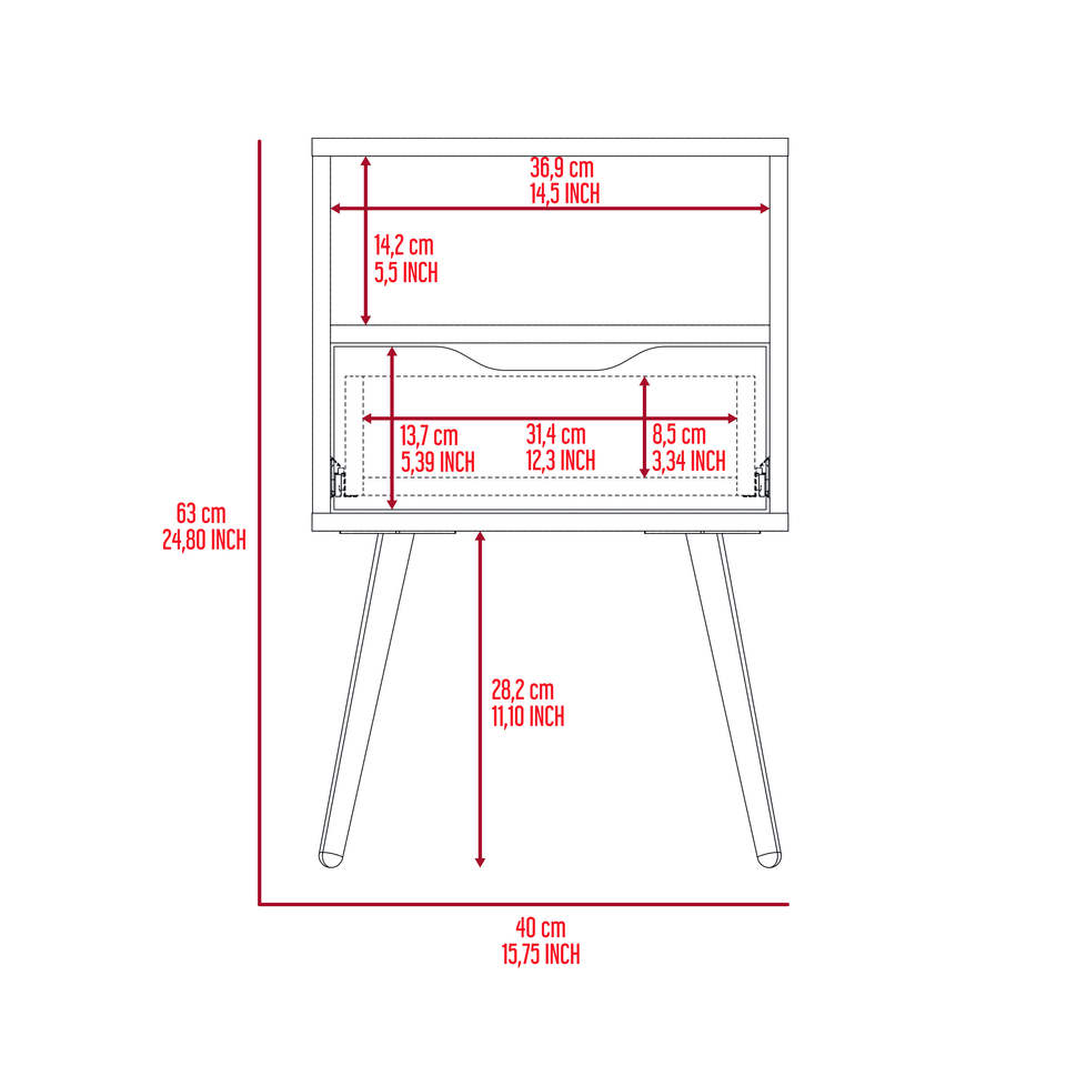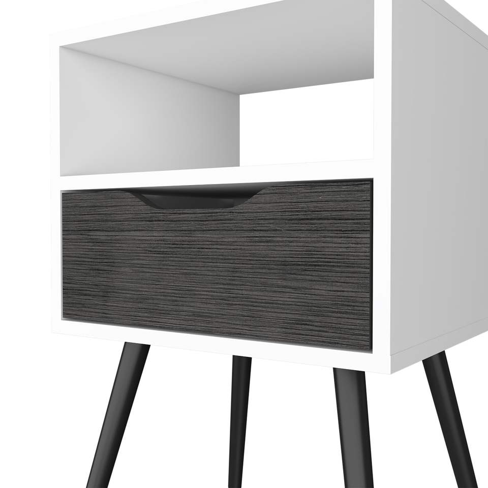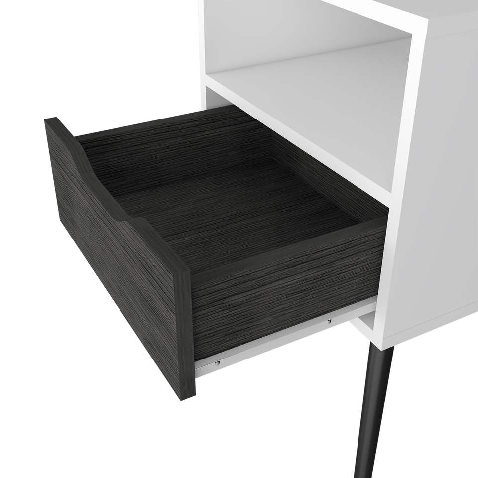 DB Smart Table de chevet Fugaz Tiroir simple avec étagère ouverte Chêne fumé/Finition blanche Design de luxe moderne Assemblé Matériau en marbre