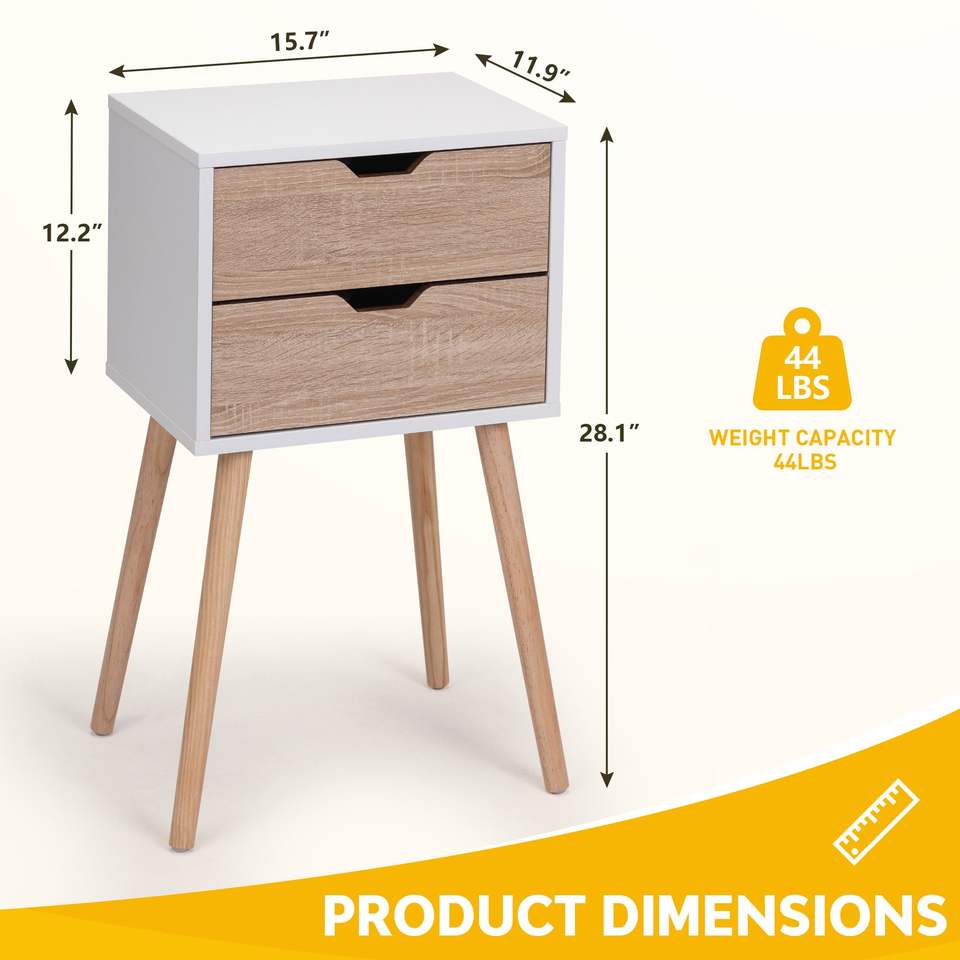 Table de chevet en bois massif avec 2 tiroirs, meuble de chambre à coucher moderne du milieu du siècle, table d'appoint pour rangement